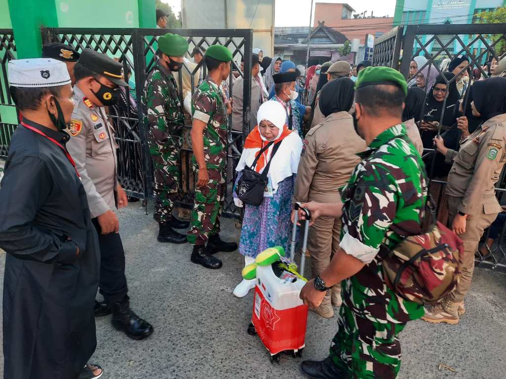 Personil Polantas kami terjunkan untuk menjaga ketertiban dan kelancaran lalu-lintas pada jalur yang dipergunakan oleh kendaraan rombongan pengantar Jemaah Haji. Untuk personil Sabhara ditugaskan menjaga situasi keamanan agar kondusif.