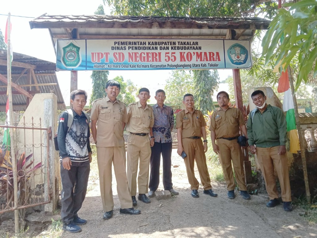 Kepala Dinas Pendidikan dan kebudayaan bersama kasi sarana prasarana dan ketua K3S Polongbangkeng Utara mengunjungi dan meninjau langsung sekolah tersebut, di Ko’mara Desa Kale Ko’mara Kecamatan Polongbangkeng Kabupaten Takalar, Senin(21/8/2023)