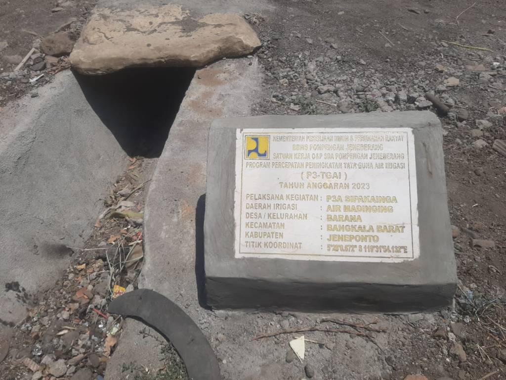 JENEPONTO // likeberita.News – Program Percepatan Peningkatan Tata Guna Air Irigasi (P3 – TGAI), yang di biayai oleh Anggaran Pendapat Belanja Negara (APBN) tahun 2023, melalui kementerian pekerjaan umum dan perumahan rakyat (PUPR). BBWS Satker SDA Pompengan Jeneberang Provinsi Sulawesi Selatan. di peruntukan bagi perkumpulan petani pemakai air (P3A) Daerah Irigasi (D.I) Air Madinging Desa Barana Kecamatan Bangkala Barat Kabupaten Jeneponto. diduga pengerjaannya terkesan asal jadi.