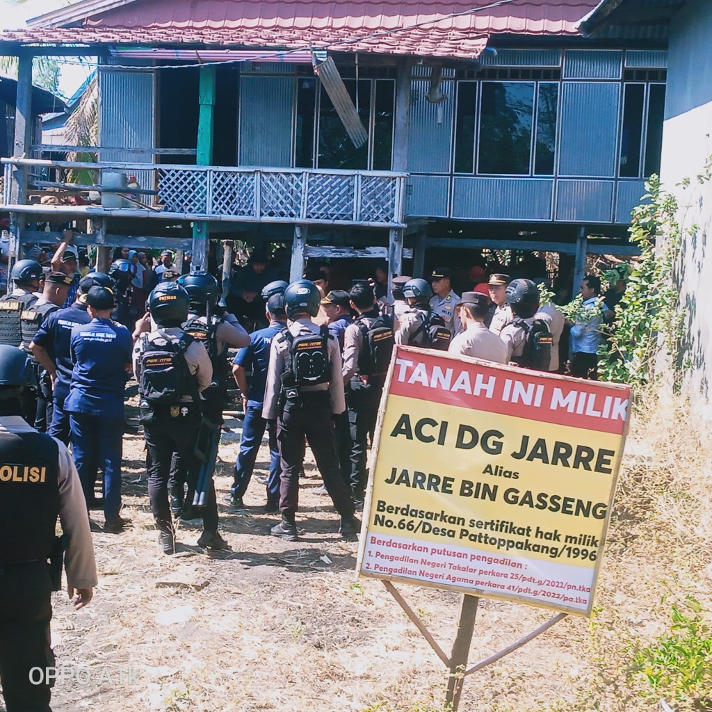 Sebanyak 160 Personil Polri Resort Takalar turun langsung dalam kegiatan melaksanakan Pengamanan, yang dipimpin langsung oleh Kabag Ops Polres Takalar AKP. Idrus untuk melakukan pengamanan kegiatan eksekusi tersebut