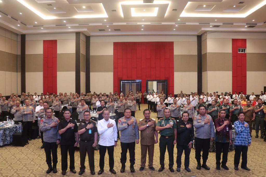 Makassar // Likeberita.News – Kapolda Sulsel Irjen Pol Drs. Setyo Boedi Moempoeni Harso, S.H., M.Hum. didampingi Wakapolda Sulsel Brigjen Pol CH Patopoi S.St., M.K., SH dan Pejabat Utama Polda Sulsel Pimpin Rakor Lintas Sektoral Operasi Mantap Brata 2023-2024 di Hotel Dalton Jl. Perintis Kemerdekaan Makassar, Selasa (03/10/23).