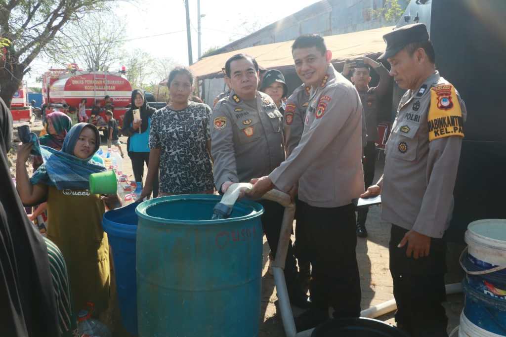 “Polda Sulsel tentunya berharap dengan diberikannya bantuan air bersih ini dapat mengurangi beban masyarakat yang sedang dalam kesulitan,” Jelas Komang Suartana.