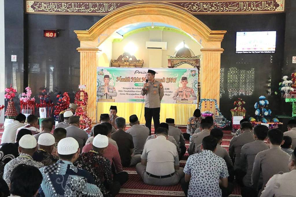 Acara Peringatan Maulid Nabi Muhammad ini mengusung tema “Dengan Meneladani Akhlak Rasulullah SAW Kita Tingkatkan Kinerja Dengan Ikhlas dan Cerdas Guna Mewujudkan Polri Presisi Indonesia Maju”.