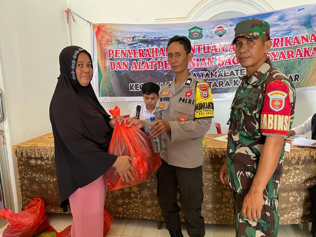 Takalar// likeberita.news-Bhabinkamtibmas Polsek Galut Polres Takalar, Aiptu Muh. Nasir dan Babinsa Desa Tamalate Sertu Rafiuddin memonitoring Penyaluran Bantuan Alat Perikanan bagi masyarakat nelayan Desa Tamalate, bertempat di Kantor Desa Tamalate, Kecamatan Galut, Kabupaten Takalar. Rabu (18/10/2023) pagi.
