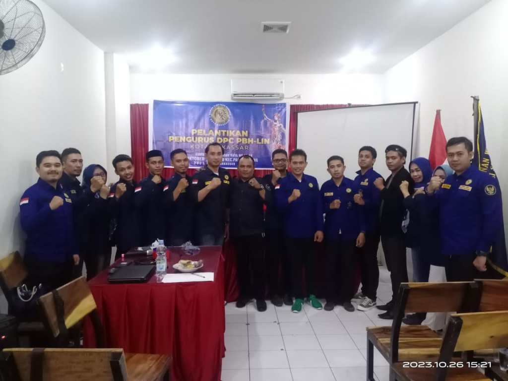 Makassar || Likeberita News – Dewan Pimpinan Cabang (DPC) Perhimpunan Bantuan Hukum Lembaga Imparsial Negara (PBH LIN) Kota Makassar telah melaksanakan pelantikan pengurus baru di sekretariat DPW PBH LIN Sulawesi Selatan, Jalan Angrek No.16, Kelurahan Paropo, Kecamatan Panakkukang, Makassar. Kamis, 26 Oktober 2023.