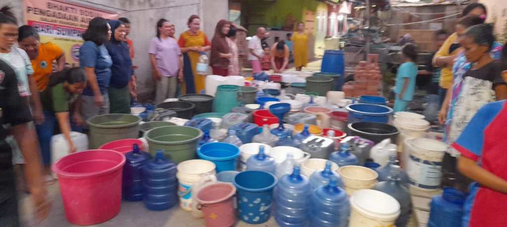 “Saat membagikan air bersih, kami juga mendapat keluhan dari warga yang mengatakan beberapa waktu lalu pembagian air yang mereka terima terlihat keruh dan tidak jernih. Makanya saat kami bantu mendistribusikan air bersih ini, mereka terlihat gembira dan terharu dengan adanya aksi sosial ini” tandasnya.