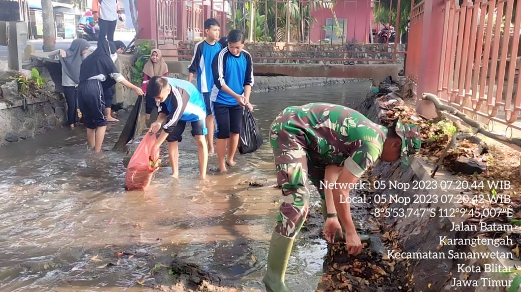 Sementara itu, Danramil 0808/20 Sananwetan Kapten Inf Dwi Haryanto menyampaikan, dalam kegiatan ini, Babinsa bersama warga masyarakat saling bahu membahu dan bekerja sama untuk membersihkan Sungai yang telah tergenang sampah dan lumpur.