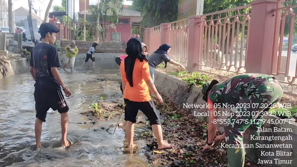 Kegiatan pembersihan sungai tersebut dilaksanakan di Jalan Batam Kel.Karangtengah Kec. Sananwetan Kota Blitar, Minggu (5/11/2023).