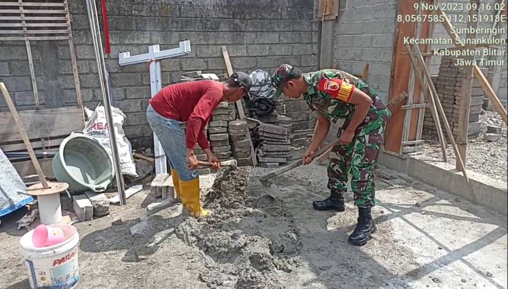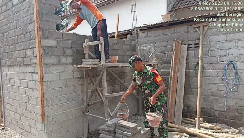 Blitar// Likeberita.News – Babinsa Koramil 0808/04 Sanankulon Kodim 0808/Blitar Sertu Dwi Hernawan bersama warga masyarakat, melaksanakan kegiatan kerja bakti dan bergotong royong untuk membantu merehab rumah milik Bapak Karmono.