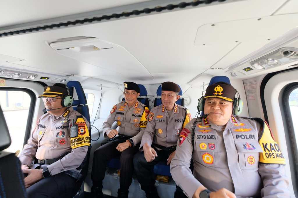 Makassar//Likeberita.news-Kapolda Sulsel Irjen Pol Drs. Setyo Boedi Moempoeni Harso, S.H., M.Hum didampingi Karo Ops Polda Sulsel beserta PJU lainnya memantau pengamanan giat Jalan Santai Cawapres Gibran lewat udara di rute sepanjang Jl Sudirman Makassar, Sabtu (25/11)