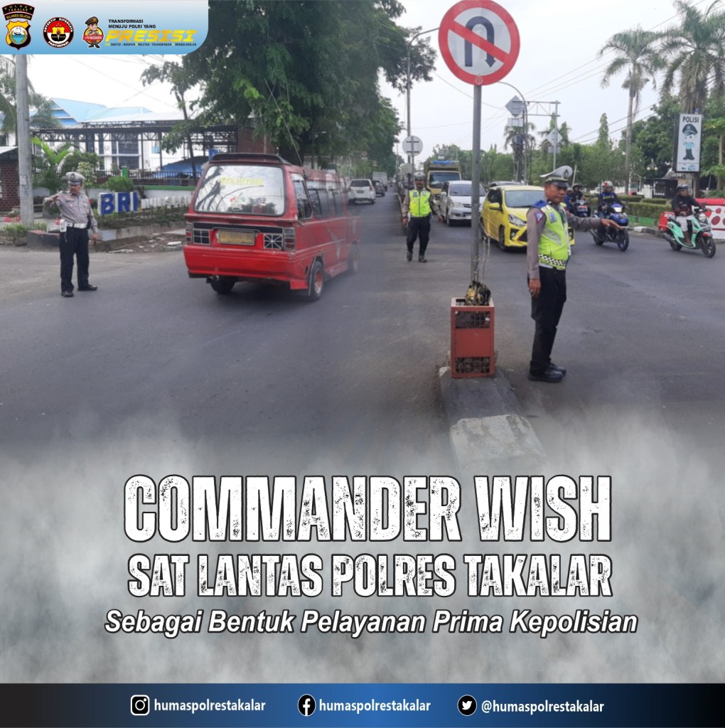 Salah satu pelayanan yang diberikan Polantas Takalar kepada masyarakat yaitu dengan melakukan Commander Wish dalam bentuk pengaturan arus lalu lintas yang berlangsung di persimpangan jalan Jendral Sudirman, Kecamatan Pattallassang, Kabupaten Takalar, Senin pagi (27/11/2023).