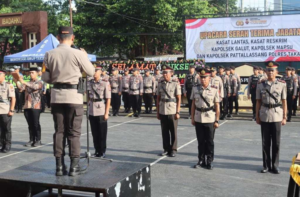 Upacara serah terima dan pelantikan dipimpin langsung oleh Kapolres Takalar AKBP Gotam Hidayat, S.I.K., M.Si, dan dihadiri para PJU, Para Kapolsek jajaran, para Perwira dan Bintara, ASN serta Ibu-ibu Bhayangkari Polres Takalar.