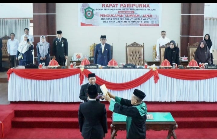 Takalar//Likeberita.News – Sidang Paripurna dengan agenda Pengucapan Sumpah/Janji Anggota DPRD Pengganti Antar Waktu (PAW) sisa masa jabatan tahun 2019-2024 berlangsung di Ruang Rapat Paripurna Gedung DPRD Kab. Takalar, Rabu 6 Desember 2023.
