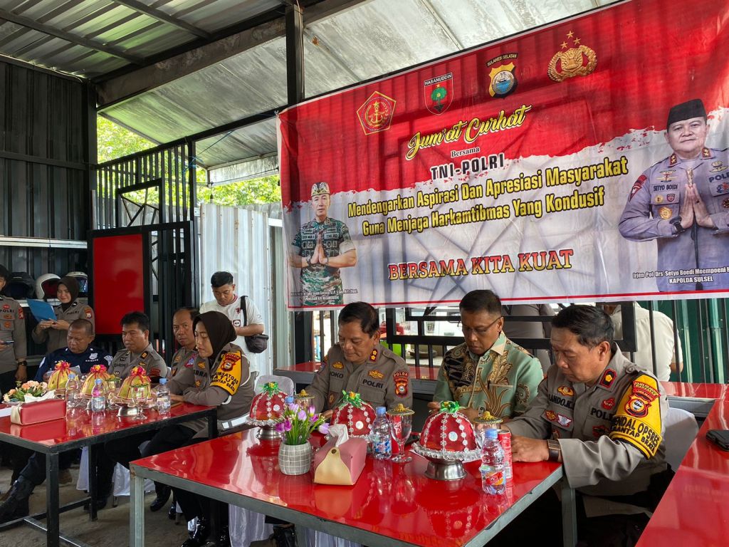 Makassar//Likeberita.News – Dirbinmas Polda Sulsel Kombes Pol. H. Andi Heru Santo, S.st., M.K., S.H., M.H beserta Perwakilan PJU Polda Sulsel mewakili Kapolda Sulsel Terima Aspirasi Warga dalam kegiatan Jumat Curhat di Kedai Atlas Jl. Sabutung Paotere Kec. Ujung Tanah Kota Makassar, Jumat, (07/12).