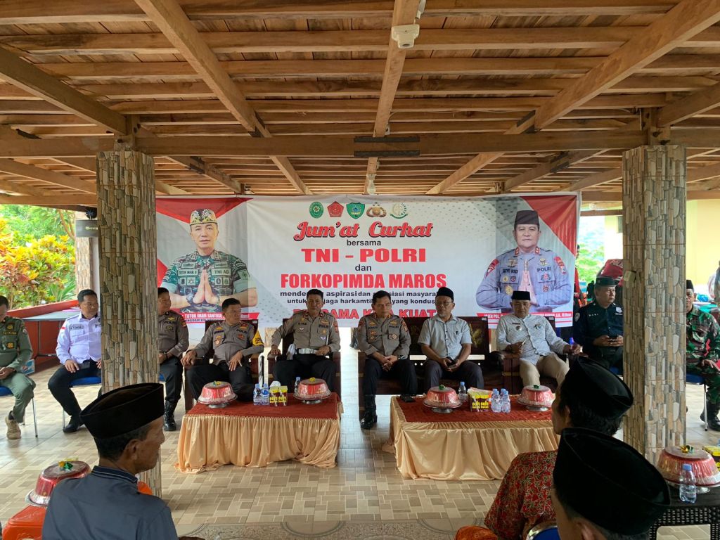 Perwakilan PJU Polda Sulsel menyampaikan Jumat Curhat bersama Masyarakat, Tokoh Agama, Tokoh Pemuda Kec.Tompo Bulu Kab.Maros bertujuan mendengar aspirasi dan keluhan masyarakat dalam upaya menjaga Kamtibmas yang kondusif.