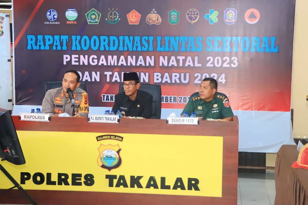 Takalar//Likeberita.News – Polres Takalar Polda Sulsel menggelar Rapat Koordinasi (Rakor) lintas sektoral Pengamanan Natal 2023 dan Tahun Baru 2024 bersama stakeholder Kabupaten Takalar di Ruang Lobby Satuan Reskrim Polres Takalar, Selasa (19/12/2023).