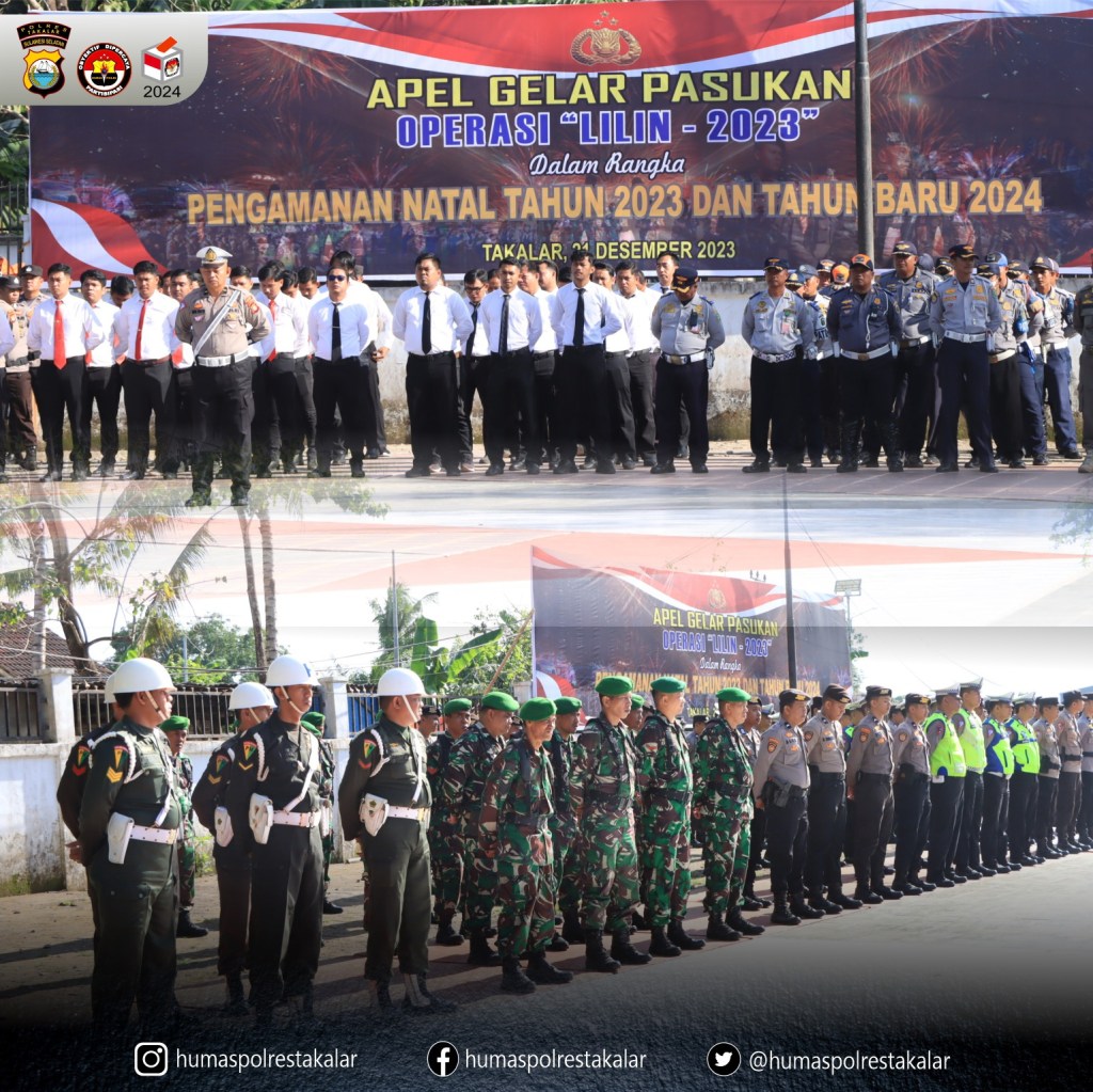 Apel Gelar Pasukan Operasi Lilin 2023 dipimpin langsung oleh Kapolres Takalar AKBP Gotam Hidayat, S.I.K., M.Si didampingi Asisten 1 Pemerintahan dan Kesra Takalar Drs. Andi Rijal, M.M, dan dihadiri unsur Forkopimda atau yang mewakili, beberapa Kepala OPD terkait, para PJU Polres Takalar serta Kapolsek jajaran.
