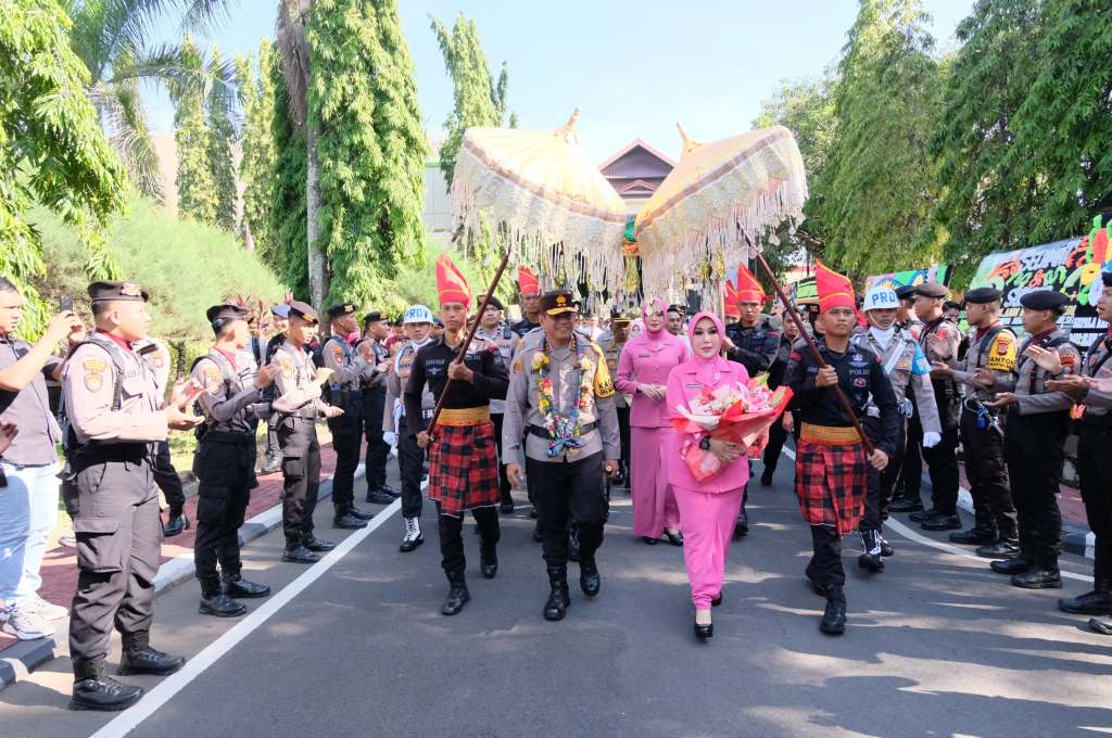 Kapolda Sulsel Irjen Pol Andi Rian R. DJajadi beserta istri kemudian menyapa jajaran personil Polda Sulsel yang berdiri berjejer menyambutnya.