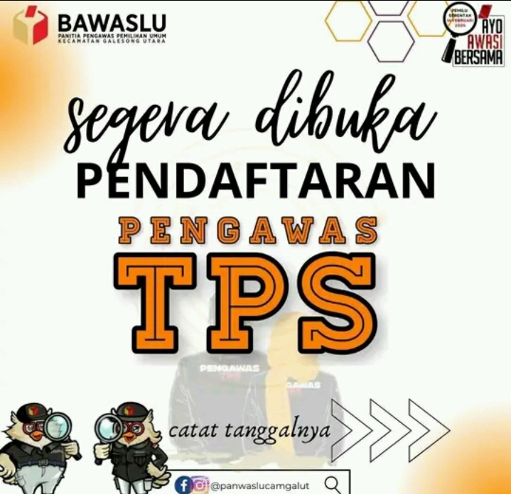 “Pendaftaran PTPS ini akan dibuka mulai tanggal 02 januari sampai 06 januari 2024 mendatang tapi tahap sosialisasi dan pengumuman sudah dimulai dari sekarang ” ujar H. Irwan B.,SE, minggu, 24 Desember 2023. Senada dengan Suparman S.Si selaku kordiv HP2H Panwaslu kecamatan galesong utara mengajak para pemilih pemula untuk ikut andil dalam perhelatan pemilu tahun 2024 dengan menjadi bagian dari jajaran lembaga Bawaslu.