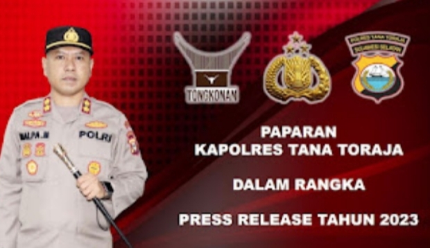 Press release akhir tahun 2023 dipimpin oleh Kapolres Tana Toraja AKBP Malpa Malacoppo, didampingi oleh Waka Polres dengan memaparkan situasi Kamtibmas selama tahun 2023 dan perbandingan tahun 2022.