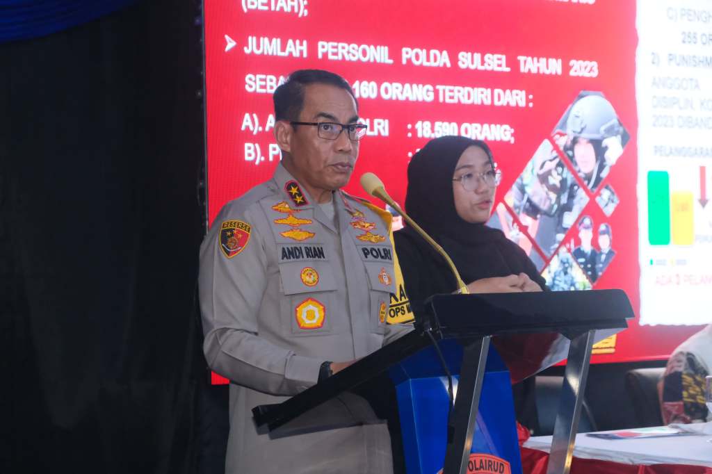 Irjen Pol Andi Rian R.Djajadi juga mengatakan capaian penghargaan Polda Sulsel tahun 2023 yang cukup membanggakan diantaranya penghargaan terbaik pertama dalam pemberantasan tindak pidana korupsi bidang penindakan tahun 2023.