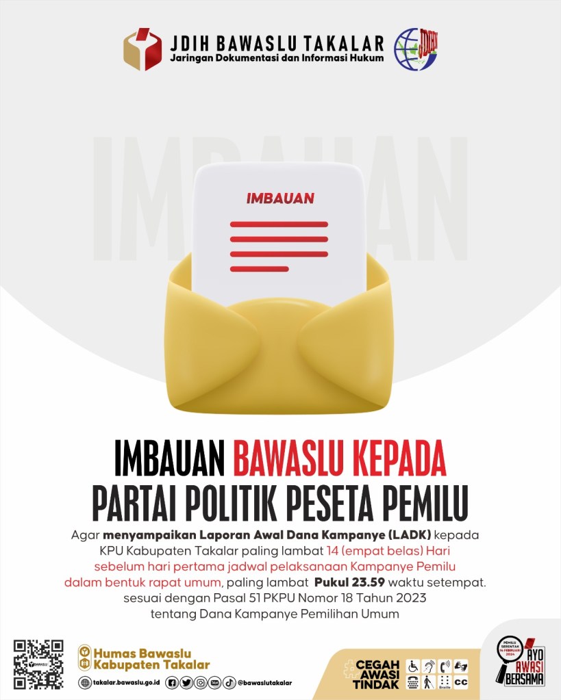 “Kami telah mengimbau Partai Politik agar melaporkan LADK paling lambat 7 Januari 2024 pukul 23.59 Wita merupakan batas waktu melaporkan ke aplikasi Sikadeka KPU Takalar”, tutur Nelly, Rabu (03/01/2024)