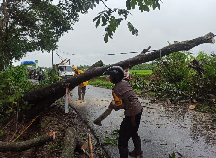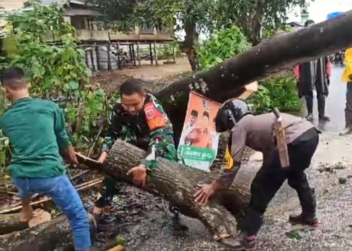 Adanya kejadian itu, menyebabkan jalur atau jalan tidak bisa dilalui oleh kendaraan, pohon tersebut menutupi seluruh badan jalan, Bhabinkamtibmas Bripka Rustam dan Babinsa Koramil Polut Serka Muh. Iqra beserta warga sekitar langsung melakukan pembersihan dengan menggunakan alat seadanya.