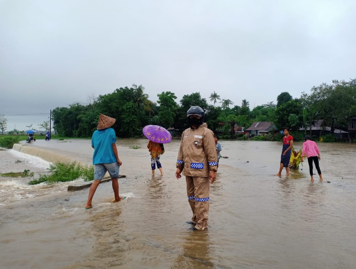 Mewaspadai potensi terjadinya banjir, Kapolsek Polut AKP H. Totok Rohyadi mengerahkan para personel untuk aktif melakukan patroli dan memantau wilayah yang sering terkena banjir di Kecamatan Polut, Kabupaten Takalar.