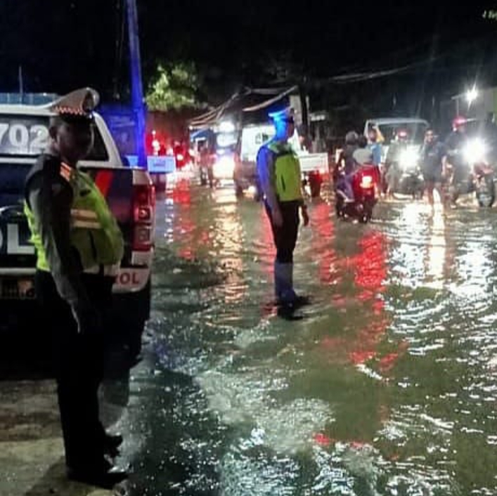 Diinformasikan oleh Kasat Lantas, hingga menjelang petang ketinggian air telah berangsur-angsur surut.