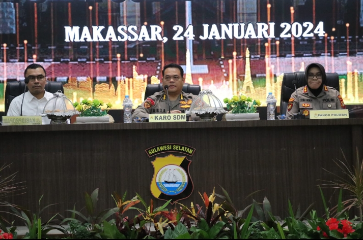 Makassar//Likeberita.News – Kepala Biro SDM Polda Sulsel Kombes Pol Aris Haryanto memberikan arahan kepada 1.081 polisi wanita (Polwan) di Gedung Aula Andi Mappauddang Polda Sulsel, Rabu (24/1/2024).