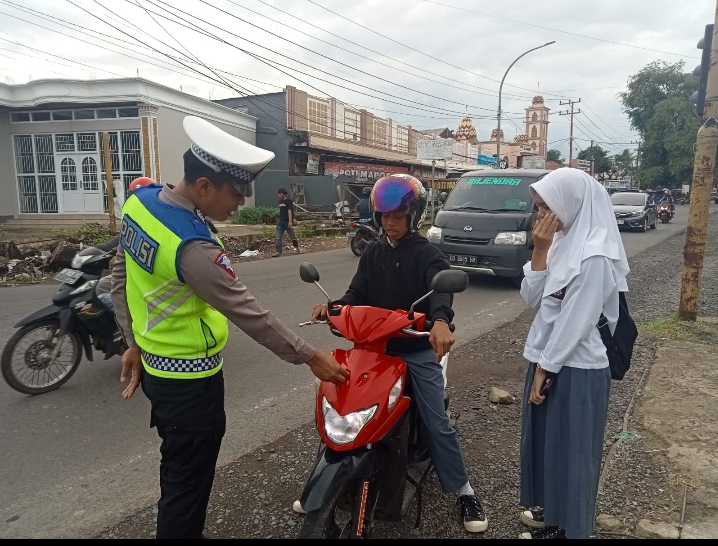 Takalar//Likeberita.News – Personel Satlantas Polres Takalar jajaran Polda Sulsel berikan teguran humanis secara langsung kepada para pelajar yang mengendarai sepeda motor tidak dilengkapi Nomor Plat dan boncengannya tidak menggunakan helm.