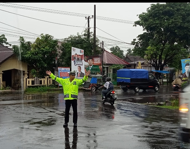 Takalar // Likeberita.News – Anggota Satuan Lalulintas Polres Takalar, Aida Wahyu bersama anggota tetap semangat melaksanakan tugas pengaturan lalulintas di Simpang Tiga Jalan poros Pari’risi, Senin (29/1/2024) pagi. Meski hujan turun, Aipda Wahyu tetap bersemangat untuk melindungi, mengayomi, dan melayani masyarakat.