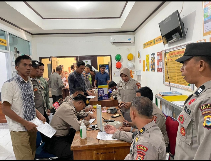 Takalar // Likeberita.News – Sidokkes Polres Takalar memeriksa kesehatan personel Polisi yang akan menjalankan tugas pengamanan di Tempat Pemungutan Suara (PAM TPS), pada Selasa (06/02/2024).