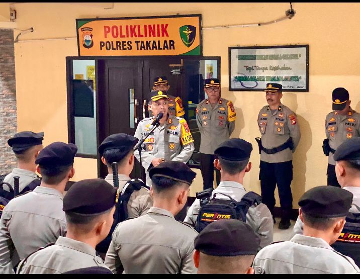 Kapolres Takalar dalam arahannya menyampaikan bahwa malam ini melaksanakan pengamanan dalam rangka mengantisipasi gangguan Kamtibmas di malam takbiran.
