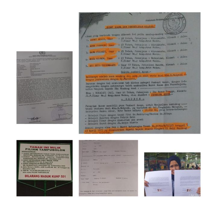 Salah satu ahli waris dari Alm Raden Moelyadi, Rosalinda, mengatakan bahwa kasus mafia tanah ini sudah dilaporkannya ke Polda Sumut dengan tiga terlapor yaitu MT yang merupakan istri sirih Alm Raden Moelyadi dan dua oknum notaris berinisial NI dan AGS dengan nomor laporan LP/B/167/II/2024/SPKT/Polda Sumut.
