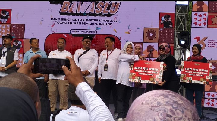 Srikandi Bawaslu Takalar, Nellyati menerima langsung penghargaan yang diserahkan oleh Ketua dan Anggota Bawaslu Republik Indonesia pada kegiatan jalan sehat Car Free Day (CFD) Bawaslu memperingati Hari Kartini di Jakarta, Minggu (21/4/2024).