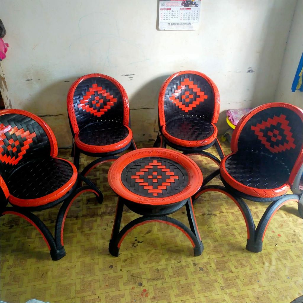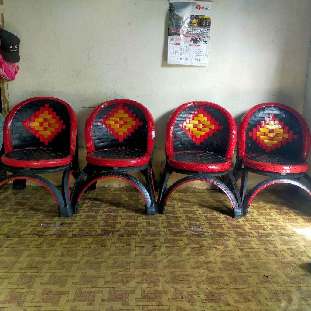 Dengan pekerja hanya berdua bersama kakak kandungnya ia mampu menghasilkan beberapa pasang untuk pembuatan kursi prosesnya lebih rumit dan membutuhkan bahan serta ban bekas lebih banyak. Untuk mendapatkan bahan ban bekas membeli dari bengkel mobil dan motor.