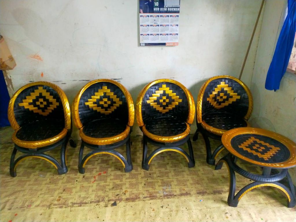 “ Kita membeli bahan dari bengkel juga upaya untuk melibatkan mereka bahwa sampah itu bisa menjadi rupiah sehingga mereka tidak membakar sampah ban bekas karena bisa menjadi racun di udara, tapi dengan mengelola ban bekas mereka bisa mendapat rupiah,” imbuhnya.