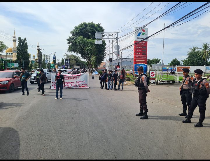 Takalar (Sul-sel) // Likeberita.News – Kepolisian Resor Takalar Polda Sulsel melakukan giat pengamanan aksi unjuk rasa (Unras) yang dilakukan Himpunan Mahasiswa Islam (HMI) Cabang Takalar di depan SPBU Kalabbirang, jalan Jendral Sudirman, Kabupaten Takalar. Rabu, (01/05/2024).