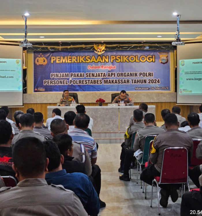 Makassar (Sulsel) // Likeberita.News – Bagian Psikologi Biro SDM Polda Sulawesi Selatan melaksanakan kegiatan pemeriksaan Psikologi dalam rangka Pinjam Pakai Senpi Organik Polri, Pemeriksaan Psikologi Berkala dan Mapping Psikologi kepada Personil Polrestabes Makassar.