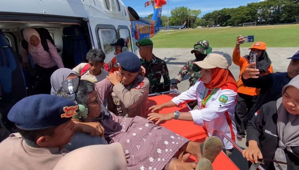 Selanjutnya Ibu tersebut diterbangkan menuju posko induk tanggap bencana provinsi Sulsel di lapangan Andi Djemma Belopa Kabupaten Luwu