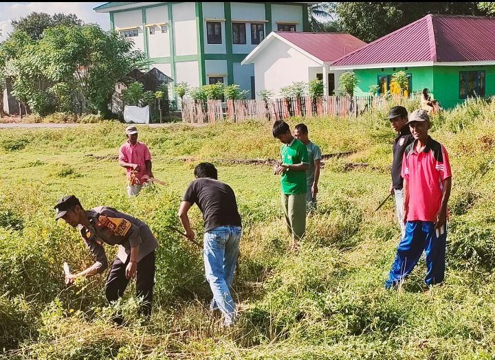 Takalar // Likeberita.News – Bhabinkamtibmas Kelurahan Mangadu Wilayah Hukum Polsek Marbo Polres Takalar, Aipda Risno bersinergi dengan staf Kelurahan Mangadu dan warga, melaksanakan Kerja Bakti, bahu membahu membersihkan lapangan sepak bola Kelurahan Mangadu, Kecamatan Marbo, Kabupaten Takalar. Jum’at 31 Mei 2024.