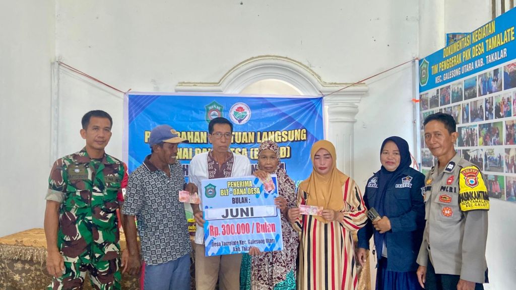 Takalar||Likeberita.news-Sinergitas TNI-Polri melakukan pengawasan pada salah satu program pemerintah yaitu BLT DD (Bantuan Langsung Tunai Dana Desa), TNI-Polri Kecamatan Galut, Kabupaten Takalar, Provinsi Sulawesi Selatan tengah terlihat kompak mengawal langsung penyaluran bantuan tersebut kepada warga Desa Tamalate, Kamis (06/06/2024).