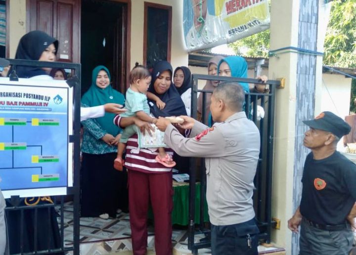 Kegiatan ini adalah kegiatan rutin yang dilaksanakan oleh Tenaga Kesehatan Bidan Desa dan Kader Posyandu disetiap bulannya di Posyandu Baji Pammuji Desa Kampungberu yang didampingi oleh Bhabinkamtibmas Polsek Galsel Bripka Muh. Empo dalam rangka untuk mencegah Stunting bagi bayi umur 0-5 Tahun