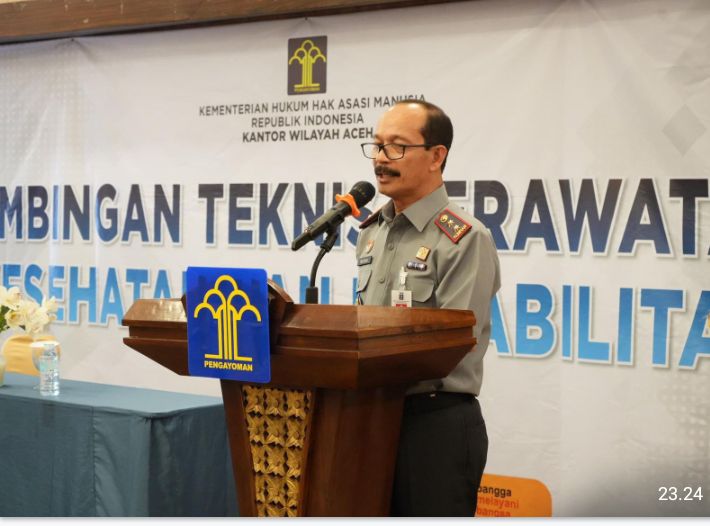 Banda Aceh // Likeberita.News – Kantor Wilayah Kementerian Hukum dan HAM Aceh menggelar kegiatan Bimbingan Teknis (Bimtek) Perawatan Kesehatan dan Rehabilitasi dengan tema โPeningkatan Petugas Penyelenggara Layanan Kesehatan bagi Warga Binaan dalam Rangka Pemasyarakatan PASTI Berdampakโ di Hotel Grand Arabia Peunayong, Senin (10/06/2024).