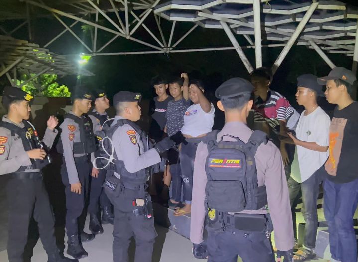 Tujuh personel Patroli Perintis Presisi menyisir jalan poros Jendral Sudirman dan Alun-alun lapangan Makkatang Dg. Sibali, tim fokus pada anak muda yang masih berkeliaran hingga larut malam tanpa kepentingan jelas.