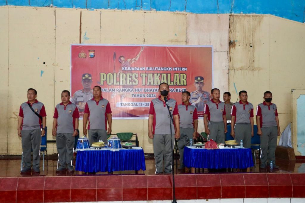 Takalar // Likeberita.News – Polres Takalar menggelar kejuaraan Bulutangkis Intern antar Personil Polres Takalar. Kejuaraan Bulutangkis dibuka langsung oleh Kapolres Takalar, AKBP Gotam Hidayat, S.I.K., M.Si di lapangan PB. Lapris, Kelurahan Kalabbirang, Kecamatan Pattalassang, Jum’at (14/06/2024).
