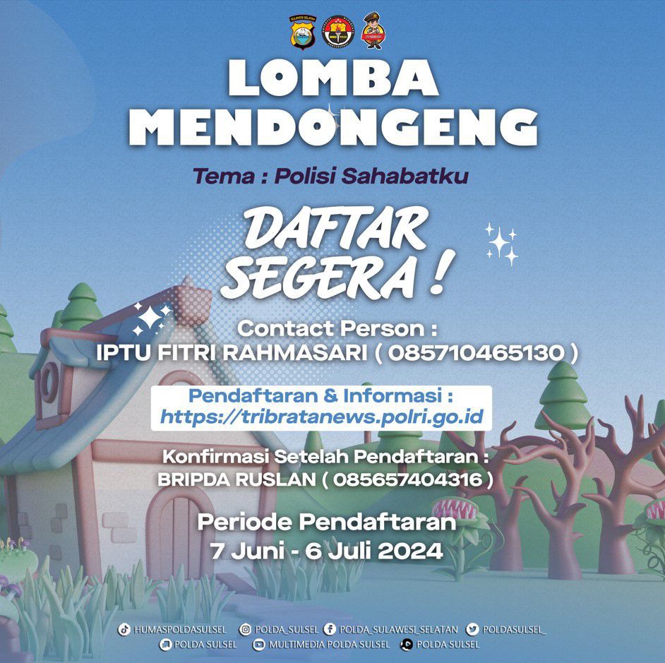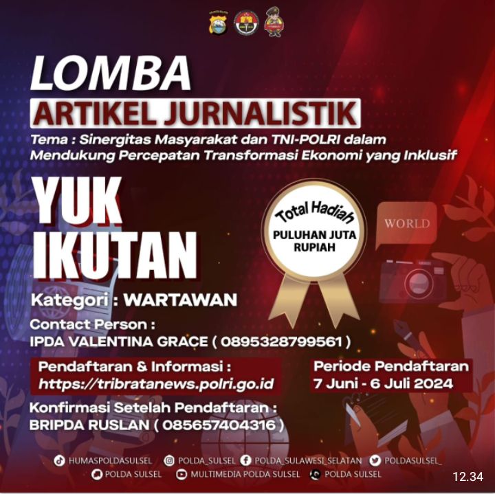 Pendaftaran lomba Setapak “Perubahan” bisa diakses di website https://tribratanews.polri.go.id/, tanpa dipungut biaya apapun, dan informasi berbagai lomba di instagram, Facebook dan media sosial Polda Sulawesi Selatan.