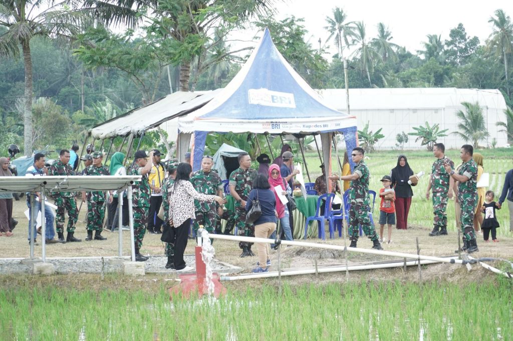 “Kedatangan kami disini adalah dalam rangka memastikan program pompanisasi pertanian yang sedang dikerjakan oleh pihak pemerintah daerah bersama jajaran Kodim 0906/Kkr telah berjalan dengan baik. Program ini dilaksanakan guna mendukung percepatan penambahan areal tanam dalam rangka mewujudkan swasembada pangan di tanah air”, ungkap Brigjen TNI Dendi Suryadi saat berinteraksi dengan anggota kelompok tani Sari Rejeki dan kelompok tani Pulo Sari.