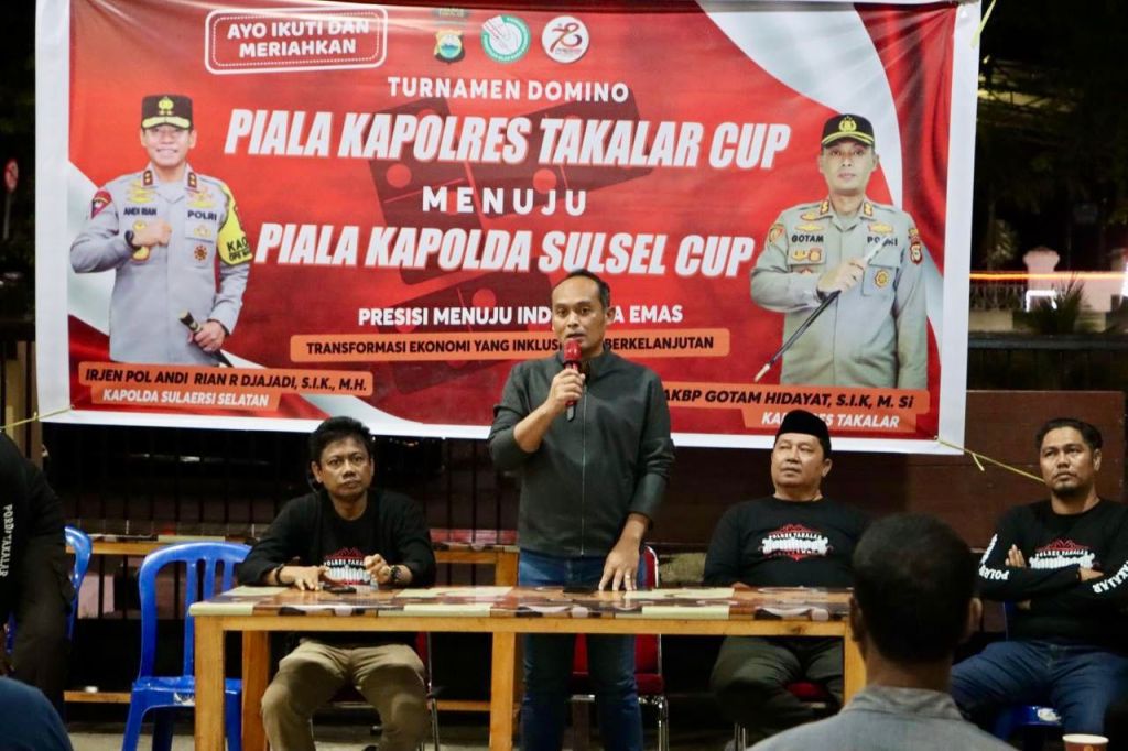 “jadi yang keluar sebagai juara I, II, III dan IV dalam turnamen ini, akan kami kirim ke Polda Sulsel mewakili Polres Takalar untuk mengikuti Turnamen Domino Kapolda Cup yang akan dilaksanakan pada tanggal 6 Juli 2024 mendatang,” ujar perwira tiga balok ini.